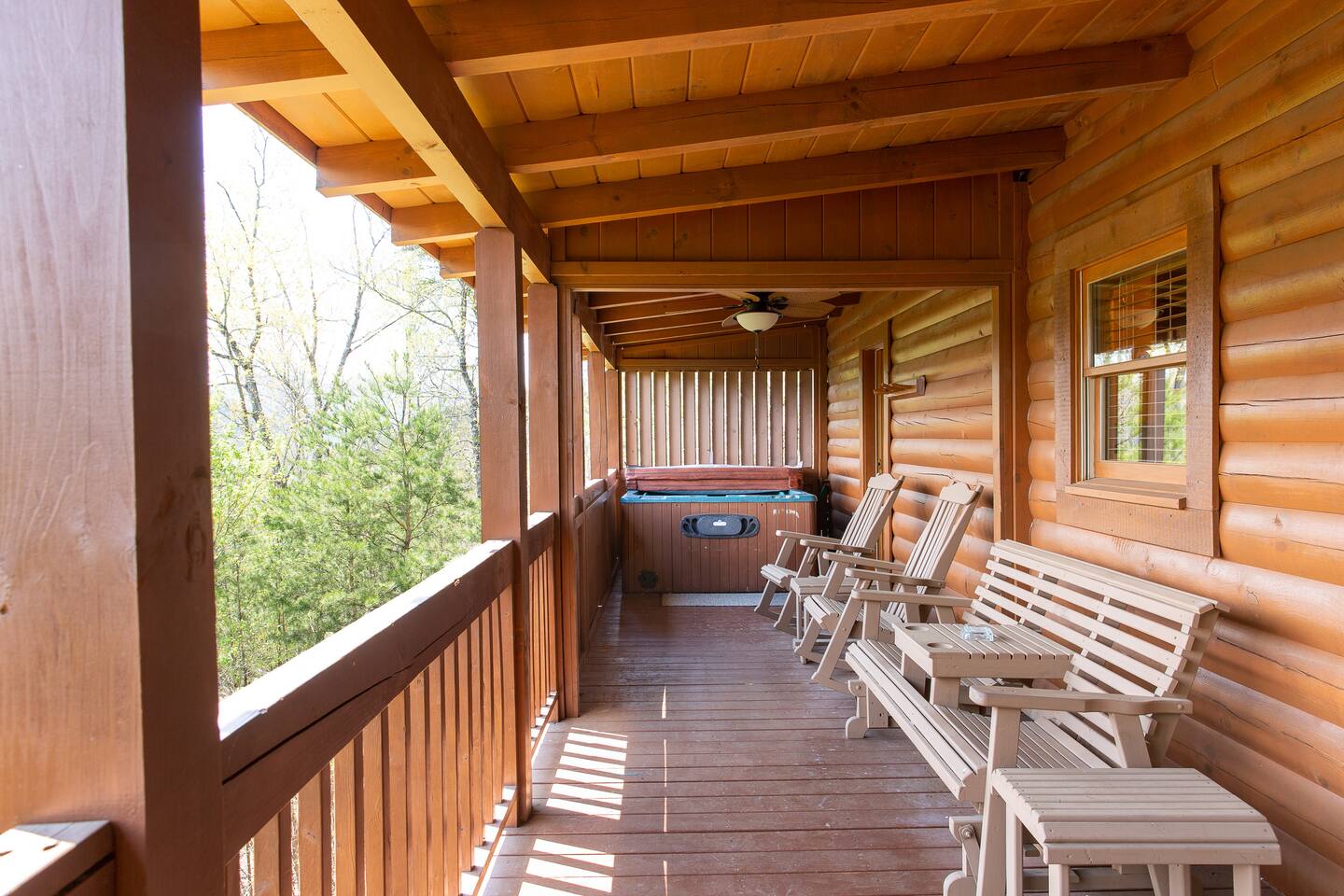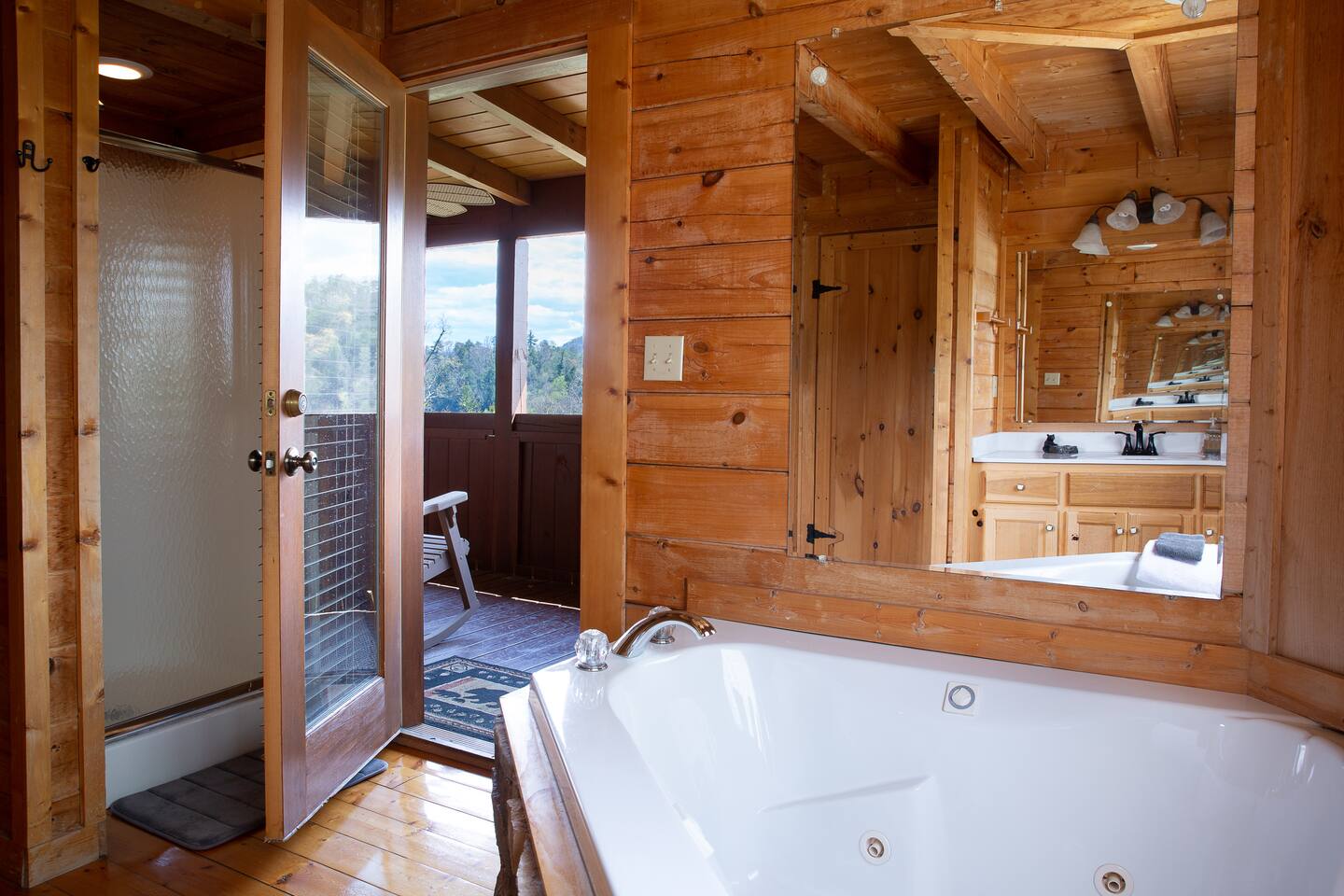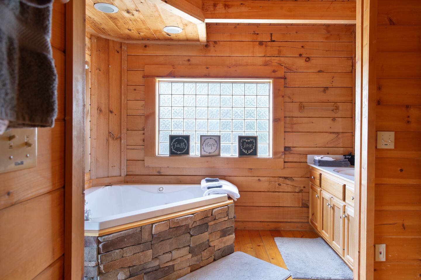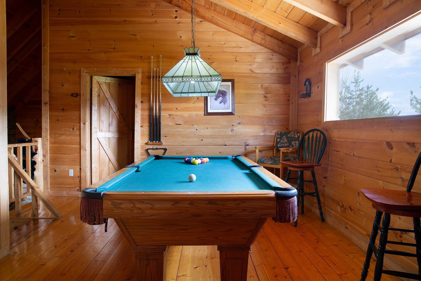 Bearfoot Pines and Piney Hop are two 3 bedroom cabins that each sleep 8 (16 total). Looking to have room the for whole family but want a little privacy? Book two cabins that are just 230 feet apart! Located on the same cozy street with no steep roads. Located in the Laughing Pines resort off of Walden's Creek, these cabins are approximately 10 minutes from Pigeon Forge, Dollywood & Splash Country, and 20 minutes from either Townsend, Gatlinburg, and the entrance to the Great Smoky Mountain National Park. Offering paved roads all the way to the resort area this cabin would be considered motorcycle friendly. Available parking for up to 3-4 vehicles at each cabin. BEARFOOT PINES Features • 3 Bed/2 Bathroom Cabin - 2 King, 2 Twin, 1 Pull out sofa - Sleeps 8 • Pool Table • Outdoor Hot Tub and Indoor Jacuzzi • 3 Fireplaces (1 gas, 2 electric) • Cable TV and High Speed Wi-Fi • Parking for 3-4 vehicles PINEY HOP Features • 3 Bed/2 Bathroom Cabin 2 King, 1 Queen, 1 Pull out sofa - - Sleeps 8 • Game Room with Foosball and Arcade • Outdoor Hot Tub and Indoor Jacuzzi • Outdoor Firepit area, Indoor Gas Fireplace • Cable TV and High Speed Wi-Fi • Parking for 3 vehicles Booking our cabin provides access to Honeysuckle Meadows Pool and Fishing Pond (15 min from cabin - May to Sept)