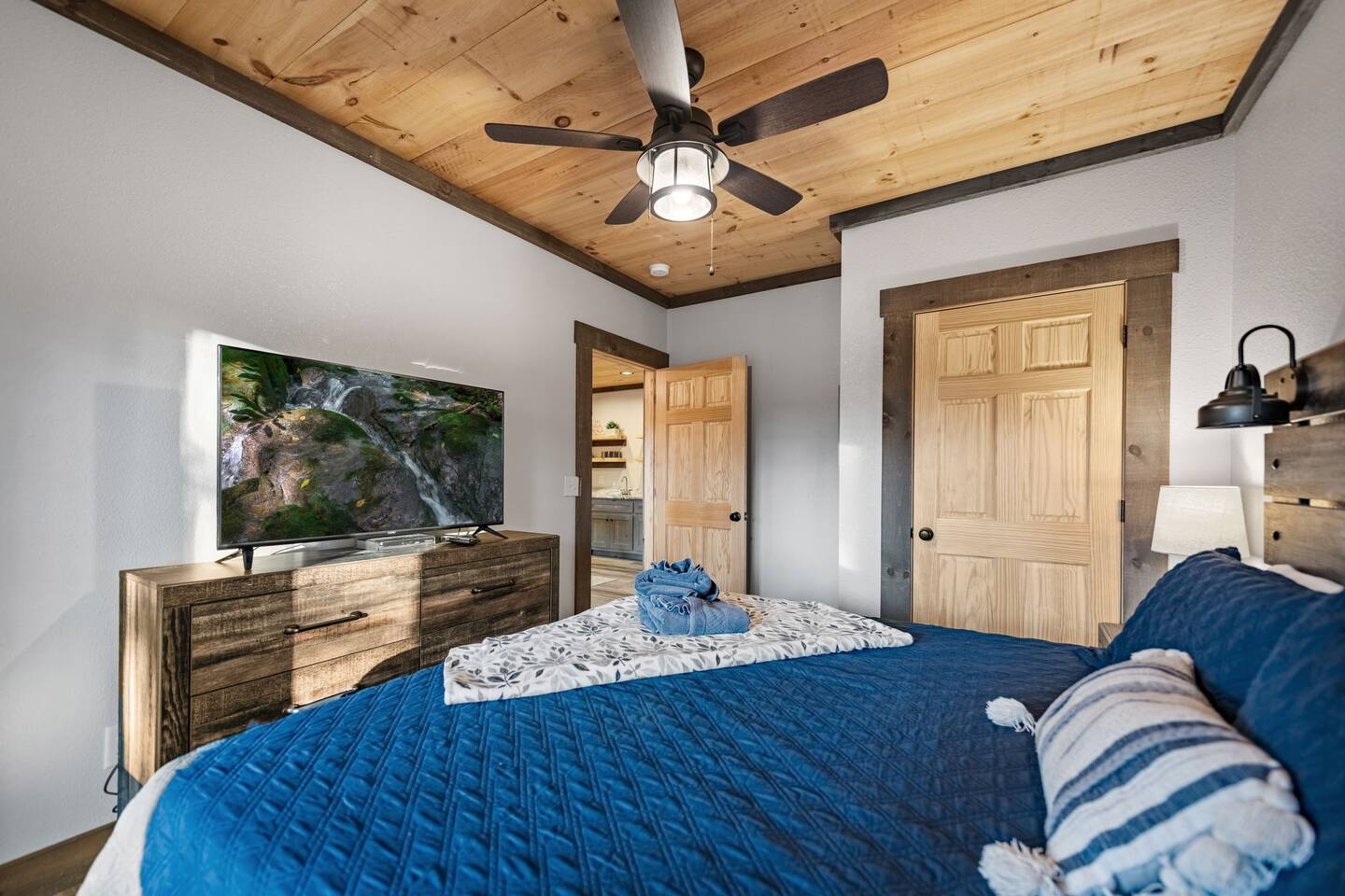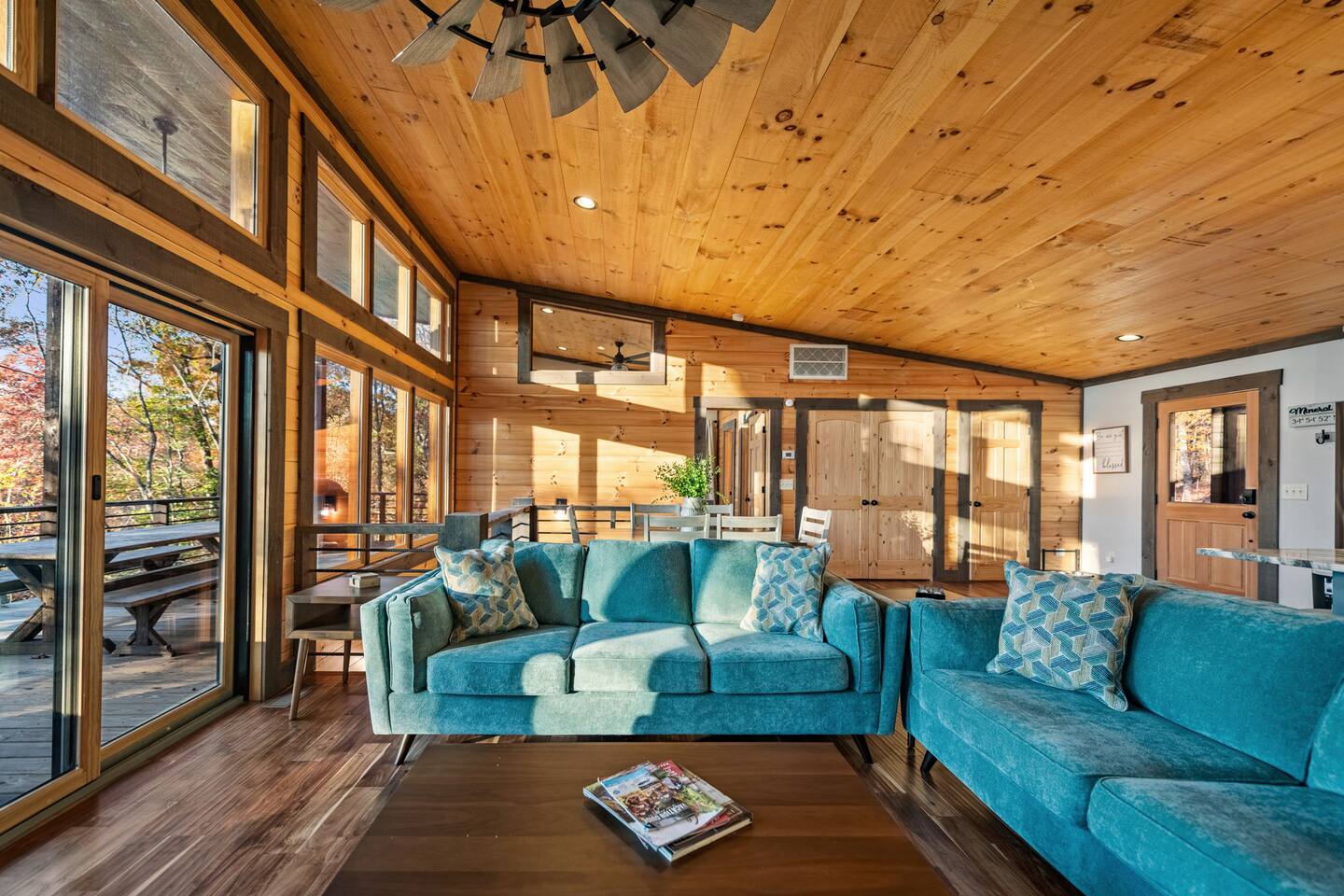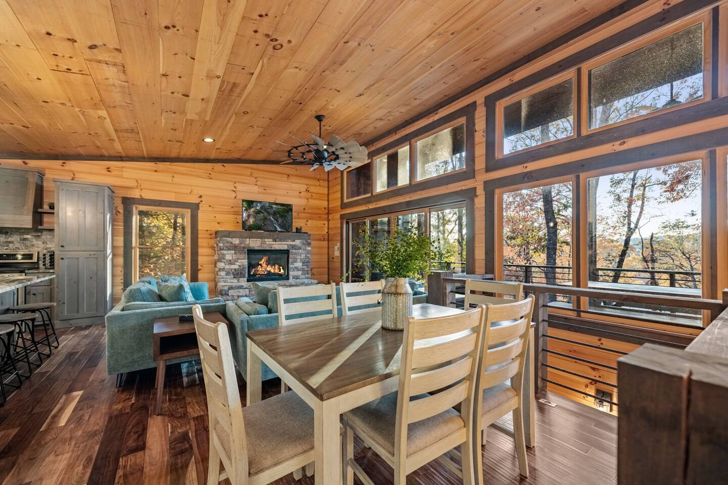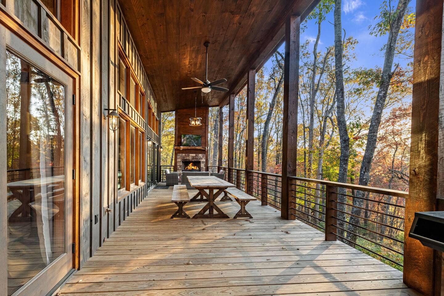 Brand new modern chalet just minutes from Blue Ridge. This 3-bedroom chalet offers 3 full-size bathrooms, a half bath and room for 8, along with a convenient location about 10 miles (15 min) from downtown Blue Ridge. That means easy access to all the wonderful attractions and splendor of Blue Ridge while enjoying the privacy and seclusion of Mineral Bluff. Featuring high speed Wi-Fi, Hot Tub, Cable TV, and a large deck with a fireplace to enjoy all those cool nights with family and friends.