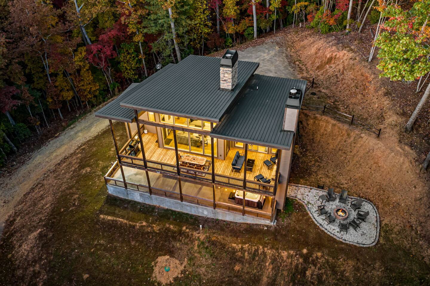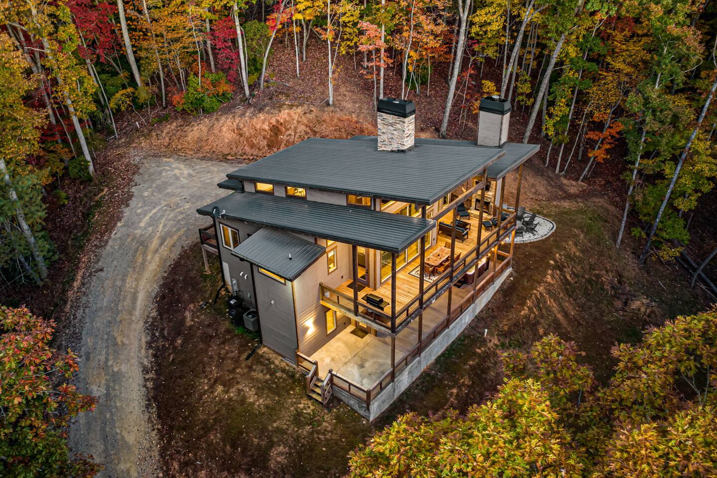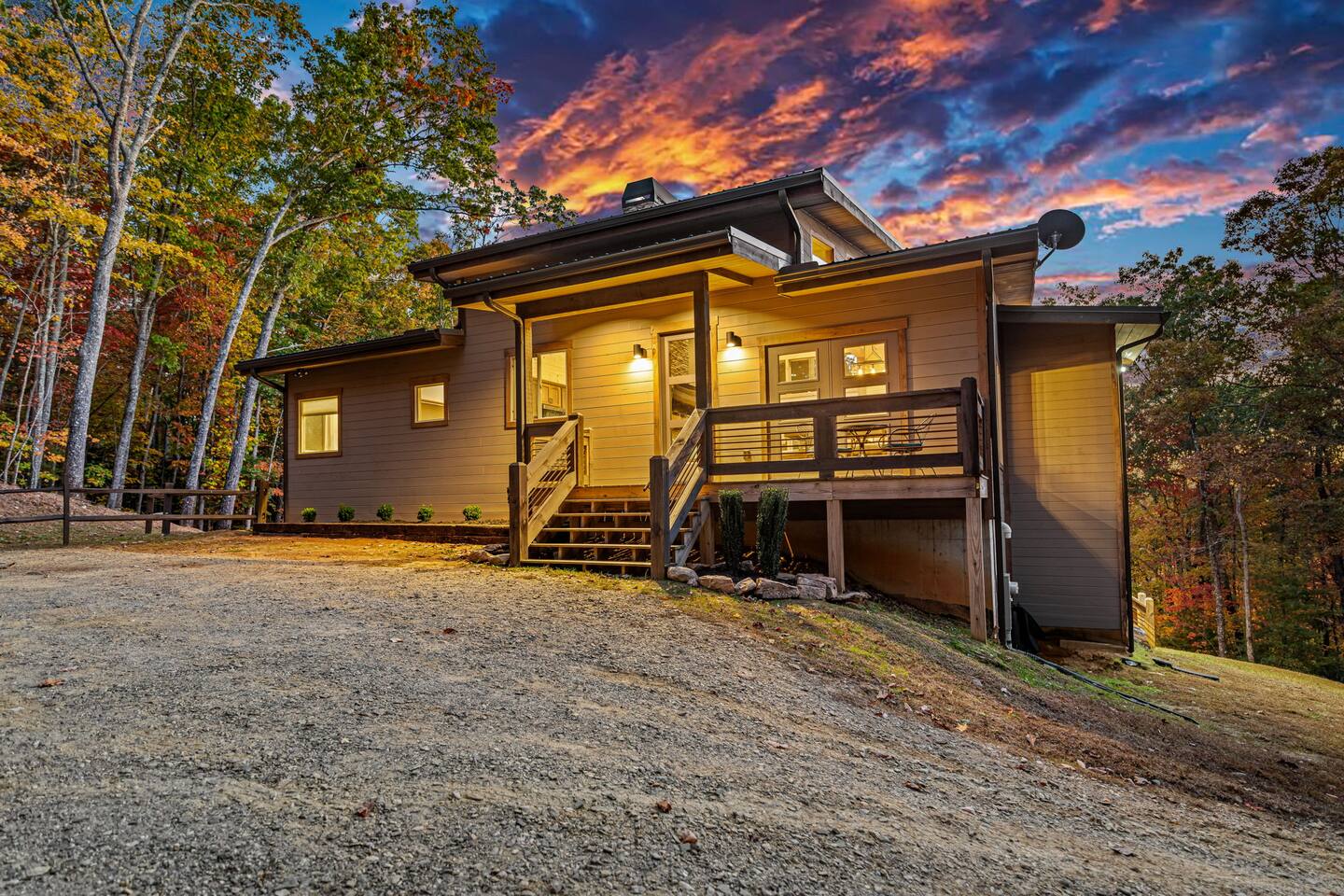 Gated community located in Morganton. Homes in the area are on a gravel road. Our cabin requires vehicles to travel on a gravel road and ascend a steep concrete hill to enjoy our wonderful views. Low clearance vehicles may encounter issues so please plan appropriately. While most vehicles will not have issues we recommend All Wheel Drive/4 Wheel Drive when possible. Always check the weather before traveling.