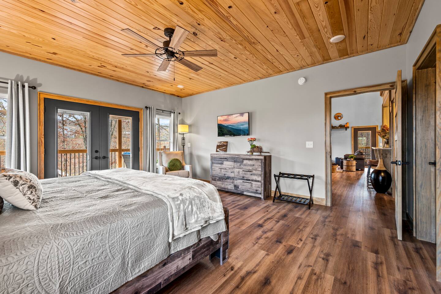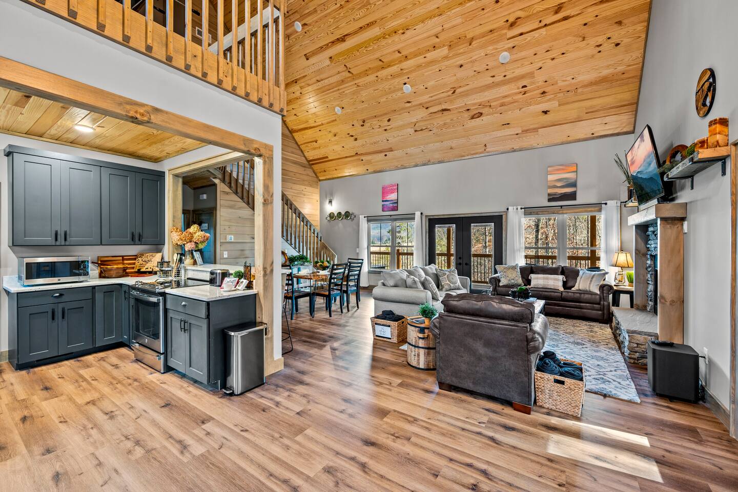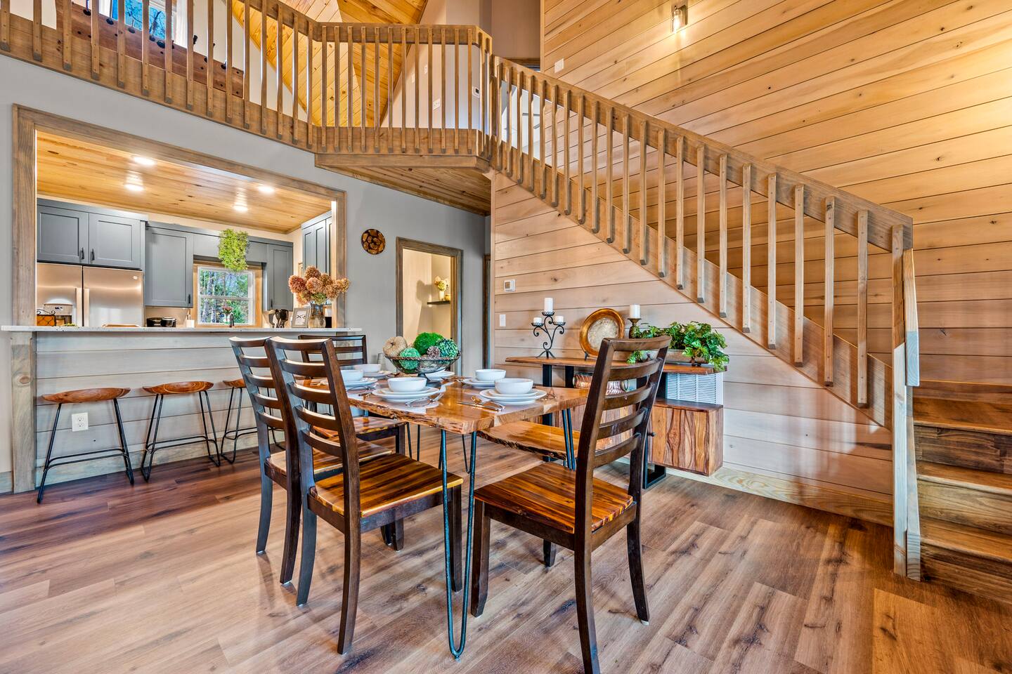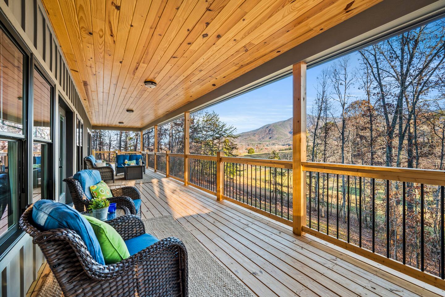 🌄 MYTHS OF THE MOUNTAIN | Wears Valley Retreat 🌄 ⭐ Featured Highlights • 3 Bedroom - Sleeps 8 • Panoramic mountain & valley views from nearly 1,000 sq ft of deck space • Easy paved access with LEVEL parking for up to 4 vehicles • Luxury hot tub with Bluetooth speakers & waterfall jets • Game loft with foosball + 60-game retro arcade • Community Pool Access (≈10 minutes away) • Gas fireplace, fire pit table & outdoor wood-burning fireplace • Prime location: 5 miles to the Smokies, minutes to Cades Cove • Starlink high-speed internet for remote work Peaceful, private setting with year-round accessibility Nestled in the heart of scenic Wears Valley, Myths of the Mountain offers a peaceful escape from everyday life while keeping you close to the best of the Smoky Mountains. Surrounded by sweeping views and quiet countryside, this thoughtfully designed cabin blends luxury, comfort, and convenience—making it a place guests love to return to year after year. Getting here is refreshingly easy. Paved roads lead directly to the cabin, where level parking for up to four vehicles eliminates the stress of steep mountain driveways. As you arrive, you’re greeted by stunning views of Cove Mountain, setting the tone for a relaxing stay from the moment you pull in. Inside, natural light fills the open living space through oversized picture windows that frame the mountains like living artwork. Comfortable leather and fabric seating invites you to relax by the gas fireplace, while the 65” 4K Roku TV paired with a JBL soundbar and subwoofer creates a cinematic experience for movie nights. The walls are adorned with striking canvas photography by National Geographic photographer Bill Lea, adding a unique local touch to the space. The gourmet kitchen flows seamlessly into the living and dining areas, making it perfect for gathering. It’s fully equipped with Calphalon cookware, a generous selection of small appliances, and thoughtful pantry staples to get you started. Whether you’re enjoying a quick breakfast at the bar, a family dinner at the dining table, or preparing a holiday meal with the oversized All-Clad turkey roaster, everything you need is right at hand. The main-level king suite feels like a private spa retreat. This spacious bedroom features French doors that open onto the deck, allowing you to wake up to panoramic valley views. The en-suite bathroom includes a double vanity, walk-in shower, and a freestanding soaking tub—perfect for unwinding after a day of hiking or sightseeing. Upstairs, the queen bedroom offers a quiet and comfortable space with blackout curtains, mountain views, and private access to a shared hall bathroom with a double vanity and tub/shower combo. The twin room is ideal for kids or extra guests, featuring a cozy reading nook, games, puzzles, and a calm, screen-free atmosphere. The loft game room is a guest favorite, offering hours of entertainment for all ages. Foosball, a bourbon-barrel arcade loaded with classic 1980s games, and a variety of board and card games make it the perfect spot for family game nights or rainy afternoons. Outdoor living truly shines here. The expansive deck invites you to dine, lounge, and relax while soaking in uninterrupted mountain views. Fire up the gas grill, enjoy evenings around the fire pit table under glowing Edison lights, or melt your stress away in the luxury hot tub complete with Bluetooth audio and full-body hydrotherapy jets. With a dedicated 100-gallon propane tank, you’ll never run out mid-grill or mid-fire. The spacious yard adds even more room to unwind. Play a game of cornhole, nap in the double hammock, browse the outdoor reading library, or gather around the wood-burning fireplace in Adirondack chairs for cozy nights under the stars. For longer stays or working vacations, the cabin includes a full laundry room and Starlink high-speed internet, making it easy to stay connected while enjoying a true mountain retreat. And when you’re ready for more, you’ll also have access to a nearby community pool just about 10 minutes away—a perfect bonus during warmer months. Myths of the Mountain is more than a cabin—it’s a place to slow down, reconnect, and create lasting memories in one of the most beautiful valleys in the Smokies.