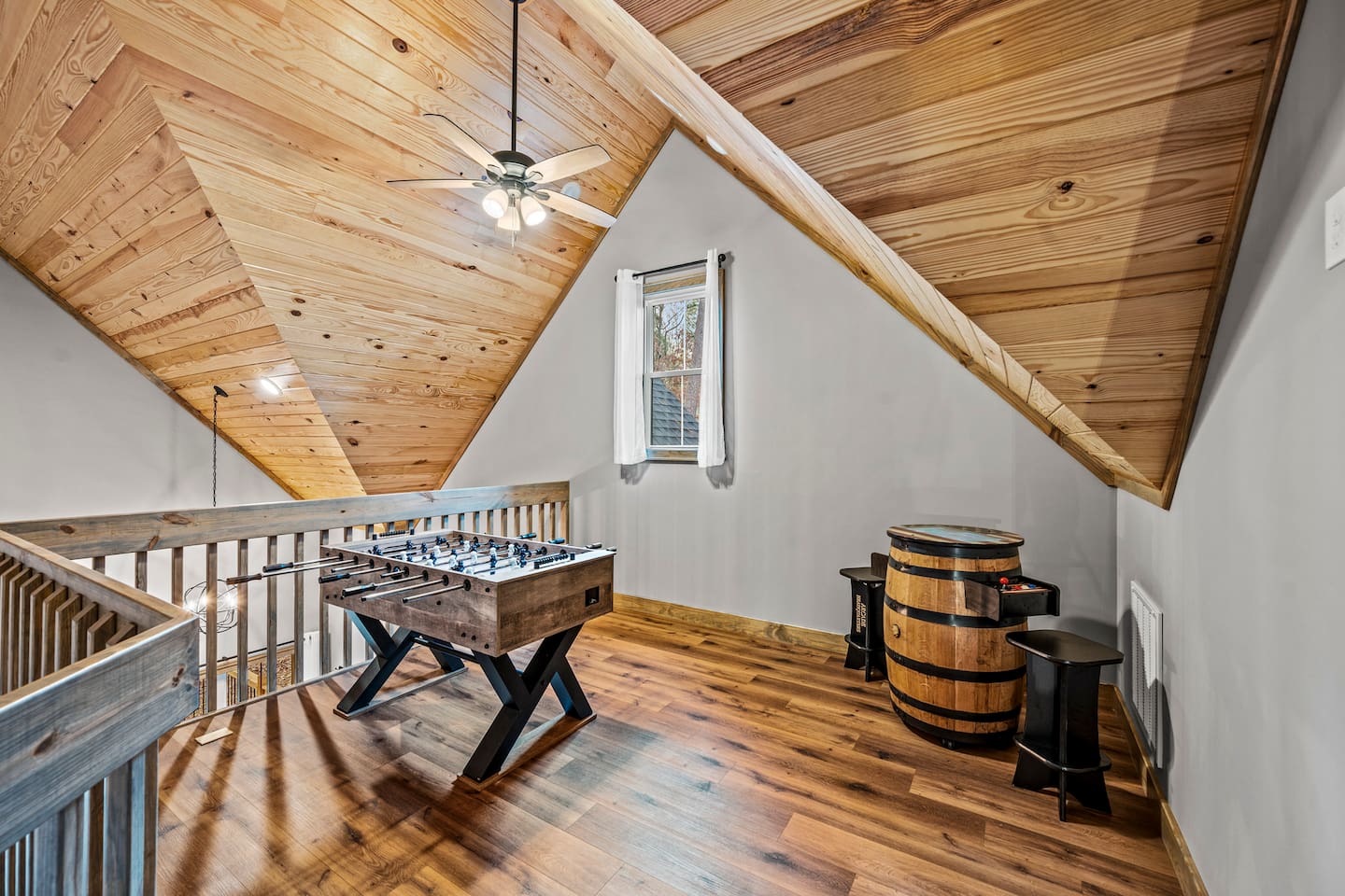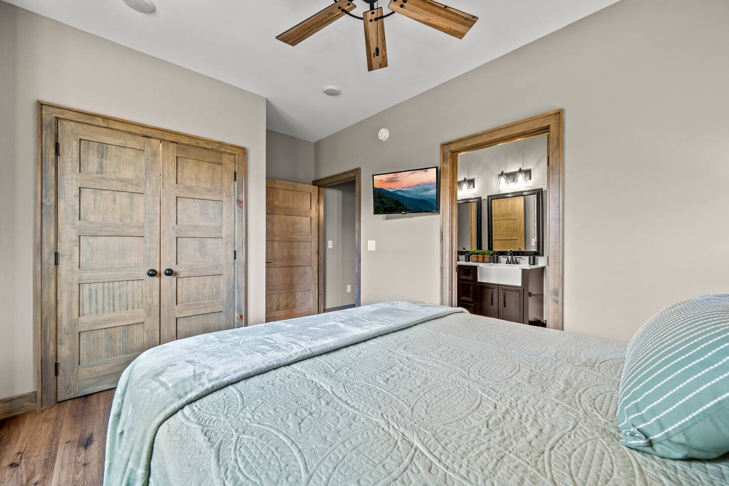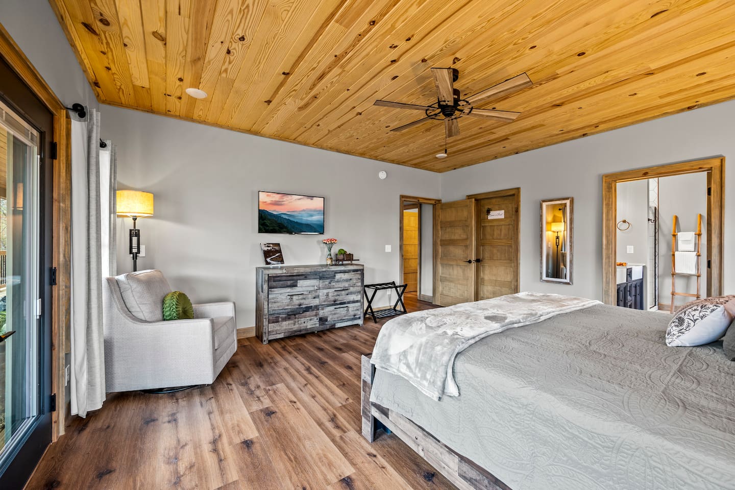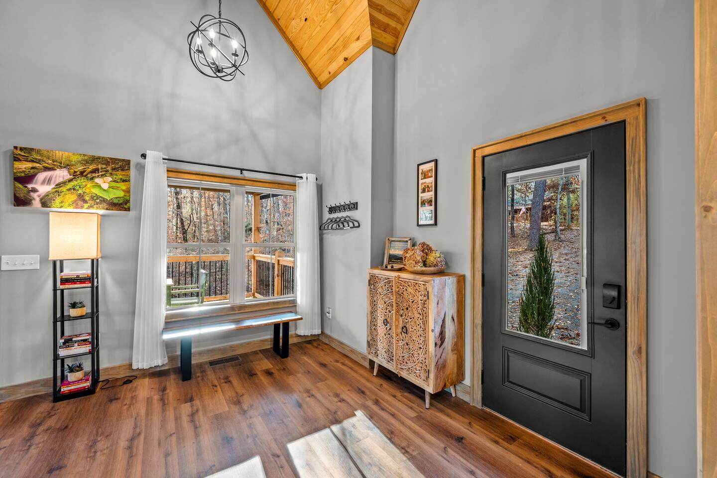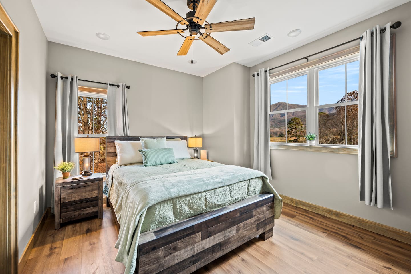 🌄 MYTHS OF THE MOUNTAIN | Wears Valley Retreat 🌄 ⭐ Featured Highlights • 3 Bedroom - Sleeps 8 • Panoramic mountain & valley views from nearly 1,000 sq ft of deck space • Easy paved access with LEVEL parking for up to 4 vehicles • Luxury hot tub with Bluetooth speakers & waterfall jets • Game loft with foosball + 60-game retro arcade • Community Pool Access (≈10 minutes away) • Gas fireplace, fire pit table & outdoor wood-burning fireplace • Prime location: 5 miles to the Smokies, minutes to Cades Cove • Starlink high-speed internet for remote work Peaceful, private setting with year-round accessibility Nestled in the heart of scenic Wears Valley, Myths of the Mountain offers a peaceful escape from everyday life while keeping you close to the best of the Smoky Mountains. Surrounded by sweeping views and quiet countryside, this thoughtfully designed cabin blends luxury, comfort, and convenience—making it a place guests love to return to year after year. Getting here is refreshingly easy. Paved roads lead directly to the cabin, where level parking for up to four vehicles eliminates the stress of steep mountain driveways. As you arrive, you’re greeted by stunning views of Cove Mountain, setting the tone for a relaxing stay from the moment you pull in. Inside, natural light fills the open living space through oversized picture windows that frame the mountains like living artwork. Comfortable leather and fabric seating invites you to relax by the gas fireplace, while the 65” 4K Roku TV paired with a JBL soundbar and subwoofer creates a cinematic experience for movie nights. The walls are adorned with striking canvas photography by National Geographic photographer Bill Lea, adding a unique local touch to the space. The gourmet kitchen flows seamlessly into the living and dining areas, making it perfect for gathering. It’s fully equipped with Calphalon cookware, a generous selection of small appliances, and thoughtful pantry staples to get you started. Whether you’re enjoying a quick breakfast at the bar, a family dinner at the dining table, or preparing a holiday meal with the oversized All-Clad turkey roaster, everything you need is right at hand. The main-level king suite feels like a private spa retreat. This spacious bedroom features French doors that open onto the deck, allowing you to wake up to panoramic valley views. The en-suite bathroom includes a double vanity, walk-in shower, and a freestanding soaking tub—perfect for unwinding after a day of hiking or sightseeing. Upstairs, the queen bedroom offers a quiet and comfortable space with blackout curtains, mountain views, and private access to a shared hall bathroom with a double vanity and tub/shower combo. The twin room is ideal for kids or extra guests, featuring a cozy reading nook, games, puzzles, and a calm, screen-free atmosphere. The loft game room is a guest favorite, offering hours of entertainment for all ages. Foosball, a bourbon-barrel arcade loaded with classic 1980s games, and a variety of board and card games make it the perfect spot for family game nights or rainy afternoons. Outdoor living truly shines here. The expansive deck invites you to dine, lounge, and relax while soaking in uninterrupted mountain views. Fire up the gas grill, enjoy evenings around the fire pit table under glowing Edison lights, or melt your stress away in the luxury hot tub complete with Bluetooth audio and full-body hydrotherapy jets. With a dedicated 100-gallon propane tank, you’ll never run out mid-grill or mid-fire. The spacious yard adds even more room to unwind. Play a game of cornhole, nap in the double hammock, browse the outdoor reading library, or gather around the wood-burning fireplace in Adirondack chairs for cozy nights under the stars. For longer stays or working vacations, the cabin includes a full laundry room and Starlink high-speed internet, making it easy to stay connected while enjoying a true mountain retreat. And when you’re ready for more, you’ll also have access to a nearby community pool just about 10 minutes away—a perfect bonus during warmer months. Myths of the Mountain is more than a cabin—it’s a place to slow down, reconnect, and create lasting memories in one of the most beautiful valleys in the Smokies.