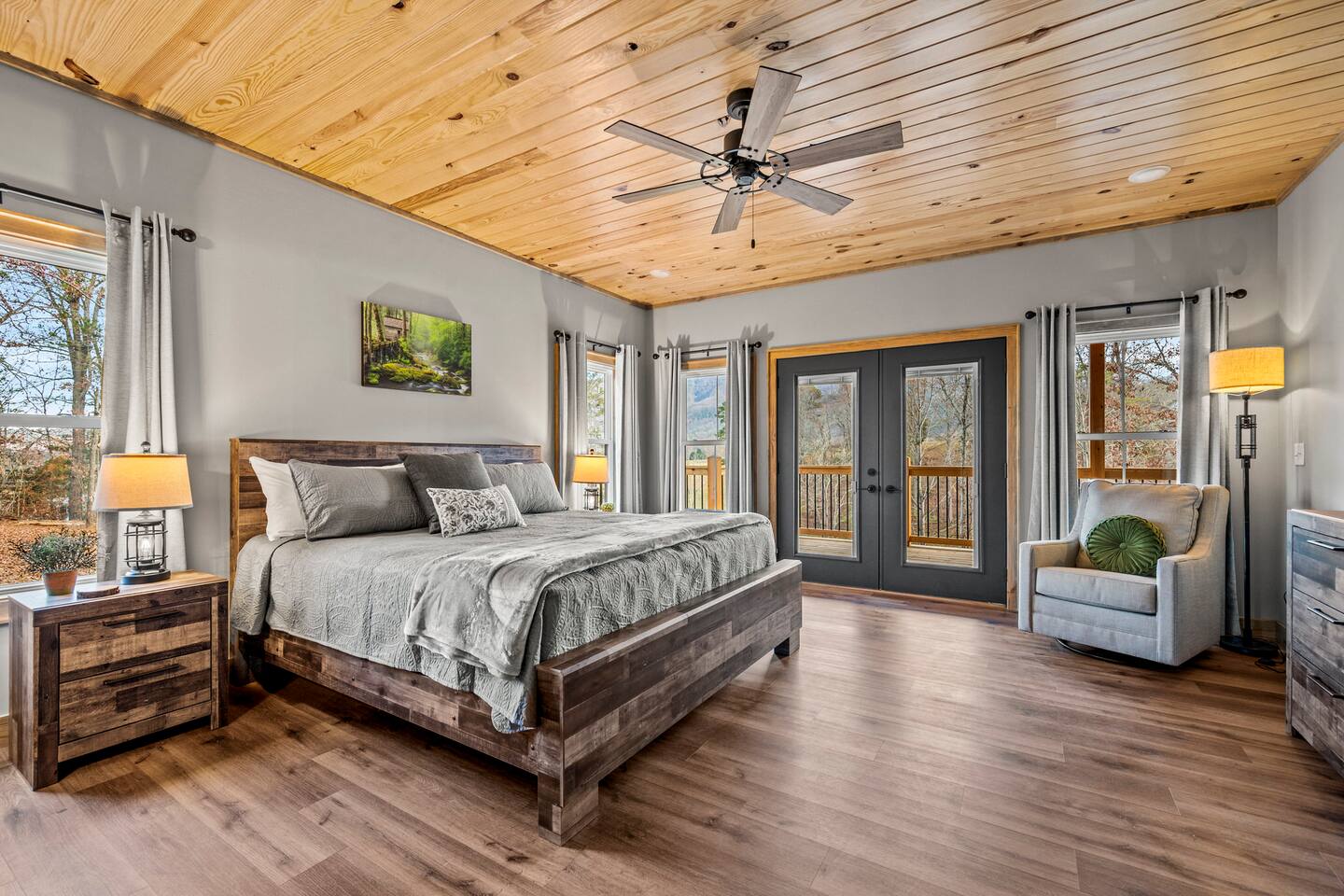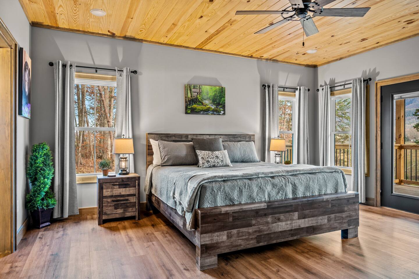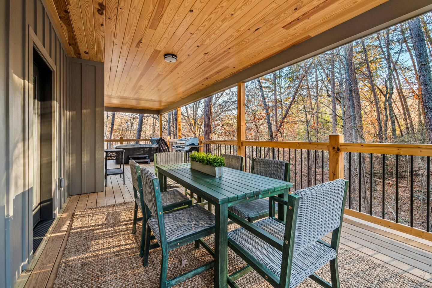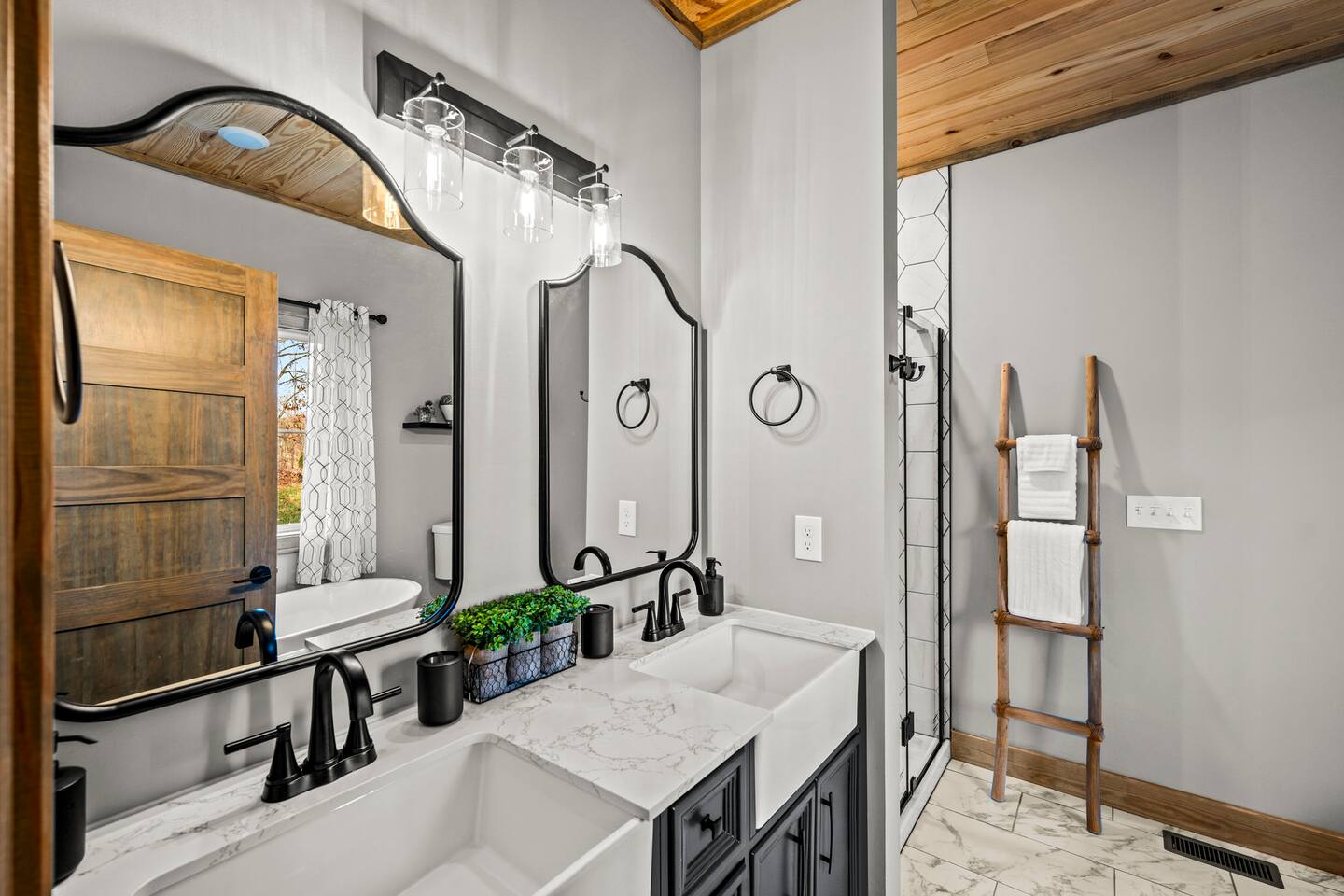 🌄 MYTHS OF THE MOUNTAIN | Wears Valley Retreat 🌄 ⭐ Featured Highlights • 3 Bedroom - Sleeps 8 • Panoramic mountain & valley views from nearly 1,000 sq ft of deck space • Easy paved access with LEVEL parking for up to 4 vehicles • Luxury hot tub with Bluetooth speakers & waterfall jets • Game loft with foosball + 60-game retro arcade • Community Pool Access (≈10 minutes away) • Gas fireplace, fire pit table & outdoor wood-burning fireplace • Prime location: 5 miles to the Smokies, minutes to Cades Cove • Starlink high-speed internet for remote work Peaceful, private setting with year-round accessibility Nestled in the heart of scenic Wears Valley, Myths of the Mountain offers a peaceful escape from everyday life while keeping you close to the best of the Smoky Mountains. Surrounded by sweeping views and quiet countryside, this thoughtfully designed cabin blends luxury, comfort, and convenience—making it a place guests love to return to year after year. Getting here is refreshingly easy. Paved roads lead directly to the cabin, where level parking for up to four vehicles eliminates the stress of steep mountain driveways. As you arrive, you’re greeted by stunning views of Cove Mountain, setting the tone for a relaxing stay from the moment you pull in. Inside, natural light fills the open living space through oversized picture windows that frame the mountains like living artwork. Comfortable leather and fabric seating invites you to relax by the gas fireplace, while the 65” 4K Roku TV paired with a JBL soundbar and subwoofer creates a cinematic experience for movie nights. The walls are adorned with striking canvas photography by National Geographic photographer Bill Lea, adding a unique local touch to the space. The gourmet kitchen flows seamlessly into the living and dining areas, making it perfect for gathering. It’s fully equipped with Calphalon cookware, a generous selection of small appliances, and thoughtful pantry staples to get you started. Whether you’re enjoying a quick breakfast at the bar, a family dinner at the dining table, or preparing a holiday meal with the oversized All-Clad turkey roaster, everything you need is right at hand. The main-level king suite feels like a private spa retreat. This spacious bedroom features French doors that open onto the deck, allowing you to wake up to panoramic valley views. The en-suite bathroom includes a double vanity, walk-in shower, and a freestanding soaking tub—perfect for unwinding after a day of hiking or sightseeing. Upstairs, the queen bedroom offers a quiet and comfortable space with blackout curtains, mountain views, and private access to a shared hall bathroom with a double vanity and tub/shower combo. The twin room is ideal for kids or extra guests, featuring a cozy reading nook, games, puzzles, and a calm, screen-free atmosphere. The loft game room is a guest favorite, offering hours of entertainment for all ages. Foosball, a bourbon-barrel arcade loaded with classic 1980s games, and a variety of board and card games make it the perfect spot for family game nights or rainy afternoons. Outdoor living truly shines here. The expansive deck invites you to dine, lounge, and relax while soaking in uninterrupted mountain views. Fire up the gas grill, enjoy evenings around the fire pit table under glowing Edison lights, or melt your stress away in the luxury hot tub complete with Bluetooth audio and full-body hydrotherapy jets. With a dedicated 100-gallon propane tank, you’ll never run out mid-grill or mid-fire. The spacious yard adds even more room to unwind. Play a game of cornhole, nap in the double hammock, browse the outdoor reading library, or gather around the wood-burning fireplace in Adirondack chairs for cozy nights under the stars. For longer stays or working vacations, the cabin includes a full laundry room and Starlink high-speed internet, making it easy to stay connected while enjoying a true mountain retreat. And when you’re ready for more, you’ll also have access to a nearby community pool just about 10 minutes away—a perfect bonus during warmer months. Myths of the Mountain is more than a cabin—it’s a place to slow down, reconnect, and create lasting memories in one of the most beautiful valleys in the Smokies.