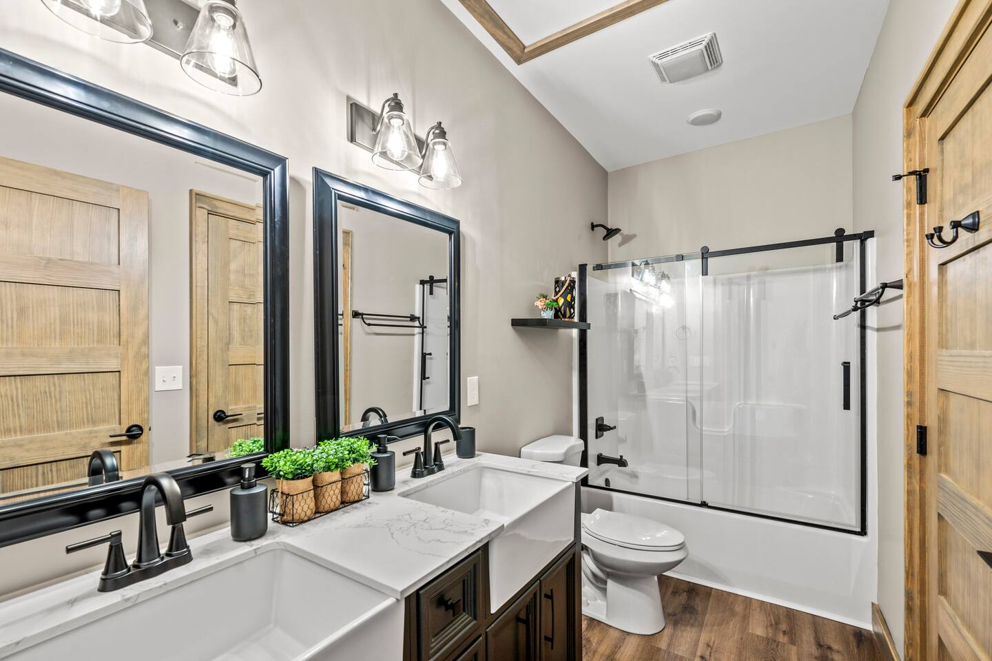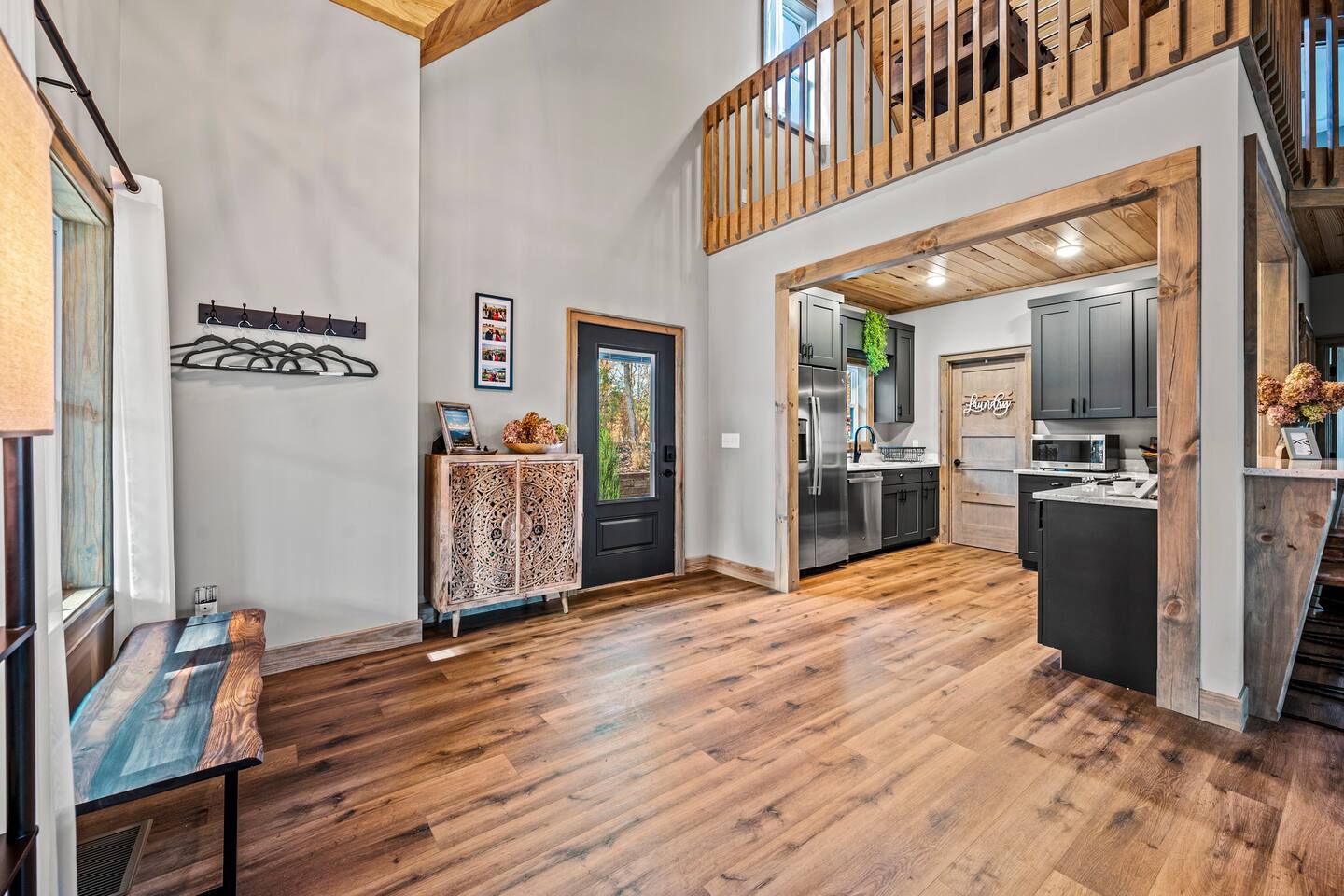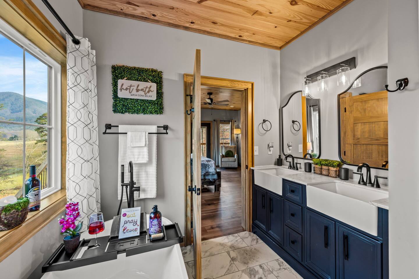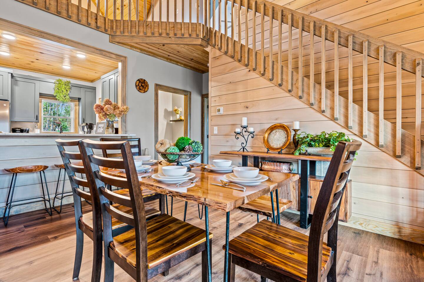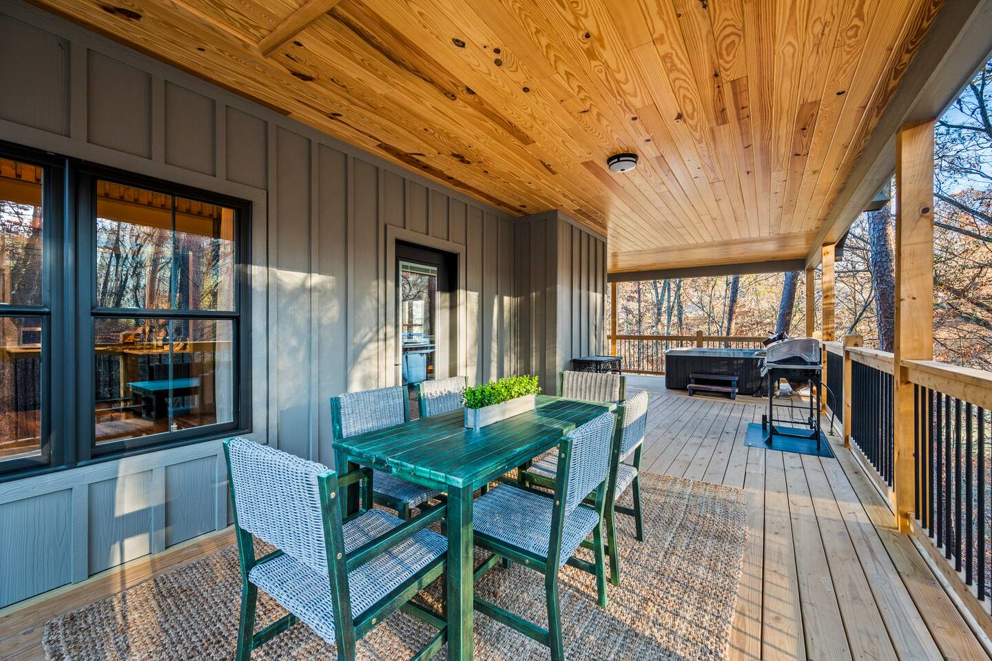 🌄 MYTHS OF THE MOUNTAIN | Wears Valley Retreat 🌄 ⭐ Featured Highlights • 3 Bedroom - Sleeps 8 • Panoramic mountain & valley views from nearly 1,000 sq ft of deck space • Easy paved access with LEVEL parking for up to 4 vehicles • Luxury hot tub with Bluetooth speakers & waterfall jets • Game loft with foosball + 60-game retro arcade • Community Pool Access (≈10 minutes away) • Gas fireplace, fire pit table & outdoor wood-burning fireplace • Prime location: 5 miles to the Smokies, minutes to Cades Cove • Starlink high-speed internet for remote work Peaceful, private setting with year-round accessibility Nestled in the heart of scenic Wears Valley, Myths of the Mountain offers a peaceful escape from everyday life while keeping you close to the best of the Smoky Mountains. Surrounded by sweeping views and quiet countryside, this thoughtfully designed cabin blends luxury, comfort, and convenience—making it a place guests love to return to year after year. Getting here is refreshingly easy. Paved roads lead directly to the cabin, where level parking for up to four vehicles eliminates the stress of steep mountain driveways. As you arrive, you’re greeted by stunning views of Cove Mountain, setting the tone for a relaxing stay from the moment you pull in. Inside, natural light fills the open living space through oversized picture windows that frame the mountains like living artwork. Comfortable leather and fabric seating invites you to relax by the gas fireplace, while the 65” 4K Roku TV paired with a JBL soundbar and subwoofer creates a cinematic experience for movie nights. The walls are adorned with striking canvas photography by National Geographic photographer Bill Lea, adding a unique local touch to the space. The gourmet kitchen flows seamlessly into the living and dining areas, making it perfect for gathering. It’s fully equipped with Calphalon cookware, a generous selection of small appliances, and thoughtful pantry staples to get you started. Whether you’re enjoying a quick breakfast at the bar, a family dinner at the dining table, or preparing a holiday meal with the oversized All-Clad turkey roaster, everything you need is right at hand. The main-level king suite feels like a private spa retreat. This spacious bedroom features French doors that open onto the deck, allowing you to wake up to panoramic valley views. The en-suite bathroom includes a double vanity, walk-in shower, and a freestanding soaking tub—perfect for unwinding after a day of hiking or sightseeing. Upstairs, the queen bedroom offers a quiet and comfortable space with blackout curtains, mountain views, and private access to a shared hall bathroom with a double vanity and tub/shower combo. The twin room is ideal for kids or extra guests, featuring a cozy reading nook, games, puzzles, and a calm, screen-free atmosphere. The loft game room is a guest favorite, offering hours of entertainment for all ages. Foosball, a bourbon-barrel arcade loaded with classic 1980s games, and a variety of board and card games make it the perfect spot for family game nights or rainy afternoons. Outdoor living truly shines here. The expansive deck invites you to dine, lounge, and relax while soaking in uninterrupted mountain views. Fire up the gas grill, enjoy evenings around the fire pit table under glowing Edison lights, or melt your stress away in the luxury hot tub complete with Bluetooth audio and full-body hydrotherapy jets. With a dedicated 100-gallon propane tank, you’ll never run out mid-grill or mid-fire. The spacious yard adds even more room to unwind. Play a game of cornhole, nap in the double hammock, browse the outdoor reading library, or gather around the wood-burning fireplace in Adirondack chairs for cozy nights under the stars. For longer stays or working vacations, the cabin includes a full laundry room and Starlink high-speed internet, making it easy to stay connected while enjoying a true mountain retreat. And when you’re ready for more, you’ll also have access to a nearby community pool just about 10 minutes away—a perfect bonus during warmer months. Myths of the Mountain is more than a cabin—it’s a place to slow down, reconnect, and create lasting memories in one of the most beautiful valleys in the Smokies.
