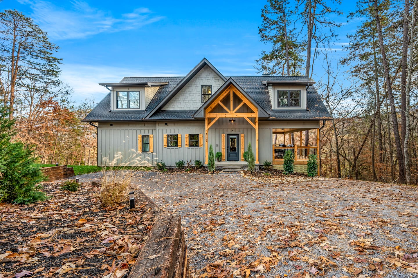 Myths of the Mountain is a peaceful Wears Valley retreat with breathtaking mountain views, amazing amenities, and easy paved road access. Relax in the luxury hot tub with Bluetooth speakers, gather by the gas fireplace or fire pit, and enjoy nearly 1,000 sq ft of deck space. Inside, you’ll find a game loft with foosball & retro arcade, a fully stocked gourmet kitchen, spa-like king suite, and Starlink high-speed internet. Just minutes to Cades Cove & the Smokies—quiet, scenic, and unforgettable.