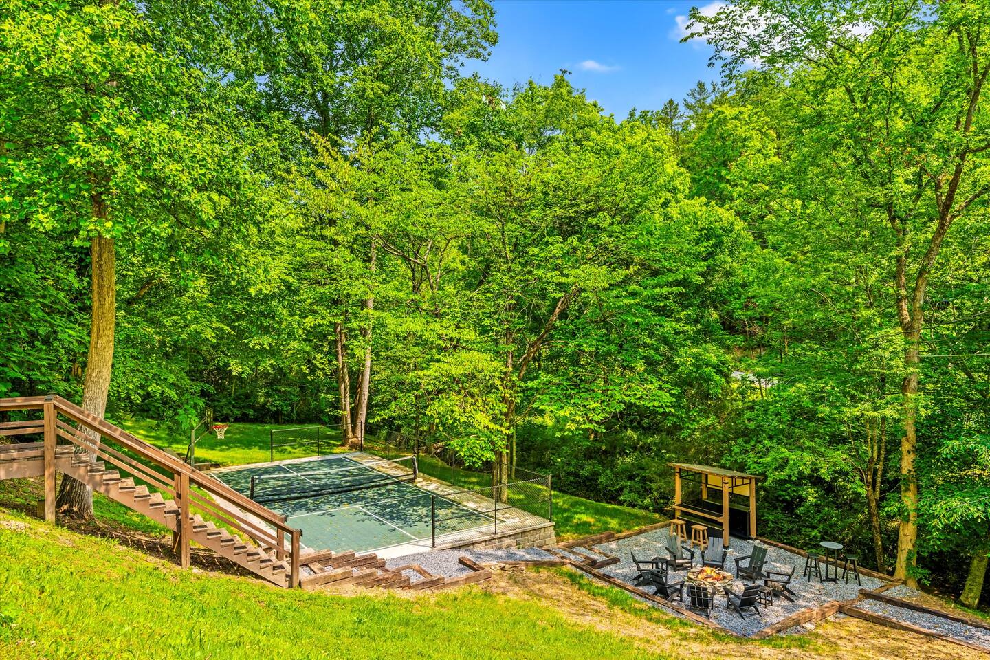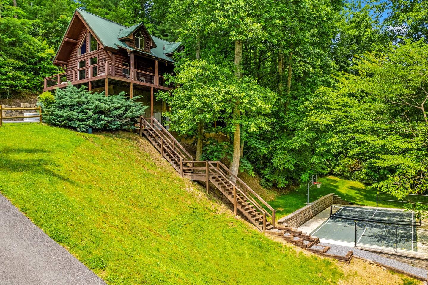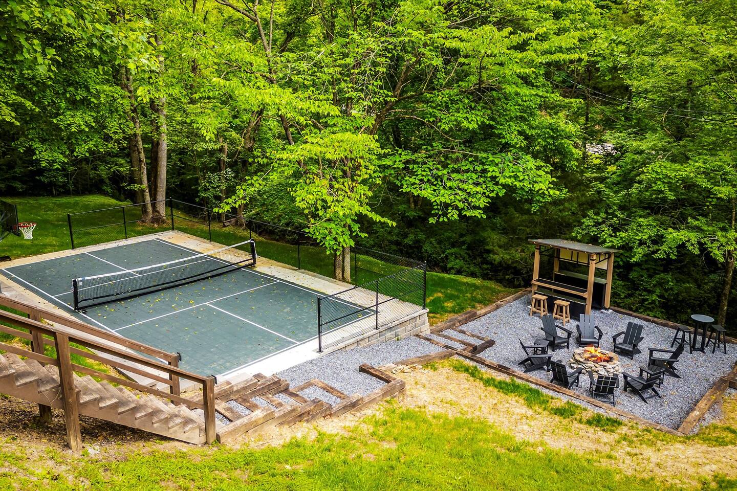 Features • 4 Bed/3.5 Bathroom Cabin - Sleeps 12 • Private Pickleball Court • Pool Table/Arcade/Game Room • Outdoor Hot Tub - New in 2023 and Seats 4 • Outdoor Fire Pit • Cable TV and High Speed Wi-Fi • Parking for 5 vehicles • Brand new Kitchen Appliances (2023) • EV Charger - Tesla, Nissan, Toyota, BMW, etc. • Access to Honeysuckle Meadows Pool and Fishing Pond (20 min from cabin - May to Sept) • 15 Minutes from Pigeon Forge This spacious, three-bedroom plus a bedroom loft cabin is right near the Smoky Mountains National Park and is perfect for hiking, mountain biking, and many other wilderness adventures. This cabin is positively aglow with rich, hardwood floors, knotty pine walls, and vaulted ceilings. The open living area has a plush leather sofa, twin matching recliners, and a stone-face gas fireplace. Features 4 TVs, WiFi, Cable, Pool Table, Jetted tub, outdoor hot tub and an amazing deck to watch those beautiful TN sunsets. Host your next vacation or holiday gathering at Relaxation Retreat, a gorgeous three story Tennessee cabin, complete with a game room, an indoor Jacuzzi, and a private outdoor hot tub. Take a short drive over to Pigeon Forge, the home of Dollywood and so many other fun-filled attractions, shops, and excellent restaurants! Relaxation Retreat is positively aglow with rich, hardwood floors, knotty pine walls, and vaulted ceilings with exposed timber beams along with all the desirable modern conveniences of home. Relaxation Retreat has amble parking to fit 3-4 vehicles. The open living area has a plush leather sofa, twin matching recliners, and a stone-face gas fireplace. The open concept kitchen has cabinets and drawers stocked with essential cookware and dinnerware, and a full array of appliances including a dishwasher and Keurig. Brand new kitchen appliances installed in 2023. Augment those home-cooked meals with the gas grill located outside on the well-appointed deck. Close by, there's a dining table with seating for ten and a breakfast bar with with seating for three. The main floor also includes the romantic and enviable master suite which offers a cozy king-size bed and a large en suite bath with a soothing Jacuzzi tub and separate step-in shower. Downstairs there are two additional bedrooms, including one with a queen bed and the other with two twins plus a full bath. The upstairs loft offers an additional queen and another full bath with a shower. With three bedrooms, a furnished loft with a pull out daybed, and an additional sleeper sofa on the lower level, this home sleeps up to 12 guests very comfortably. Thanks to the complimentary WiFi, you can easily stream your favorite shows and share photos and videos of your vacation with friends and family back home. Check on the local news and weather or keep up with all your favorite shows on multiple cable TVs. Head downstairs into the game room and enjoy a few games of pool or the arcade cabinet. At the end of the day slide into the hot tub located out on the deck. A private washer/dryer is also provided if you want to leave those bulky, over-stuffed suitcases back home! No visit to the area would be complete without a trip to nearby Dollywood or Pigeon Forge. The cabin is just 15 minutes from Pigeon Forge and 25 minutes from Gatlinburg. Conveniently close to a main road with no windy or steep mountains to climb. No matter the season, make your reservation today and get ready to experience the beauty of the Great Smoky Mountain National Park at this rustic and well maintained cabin!