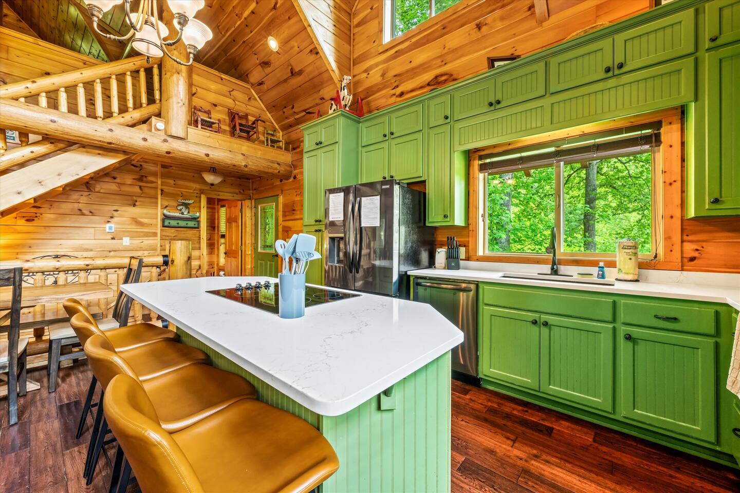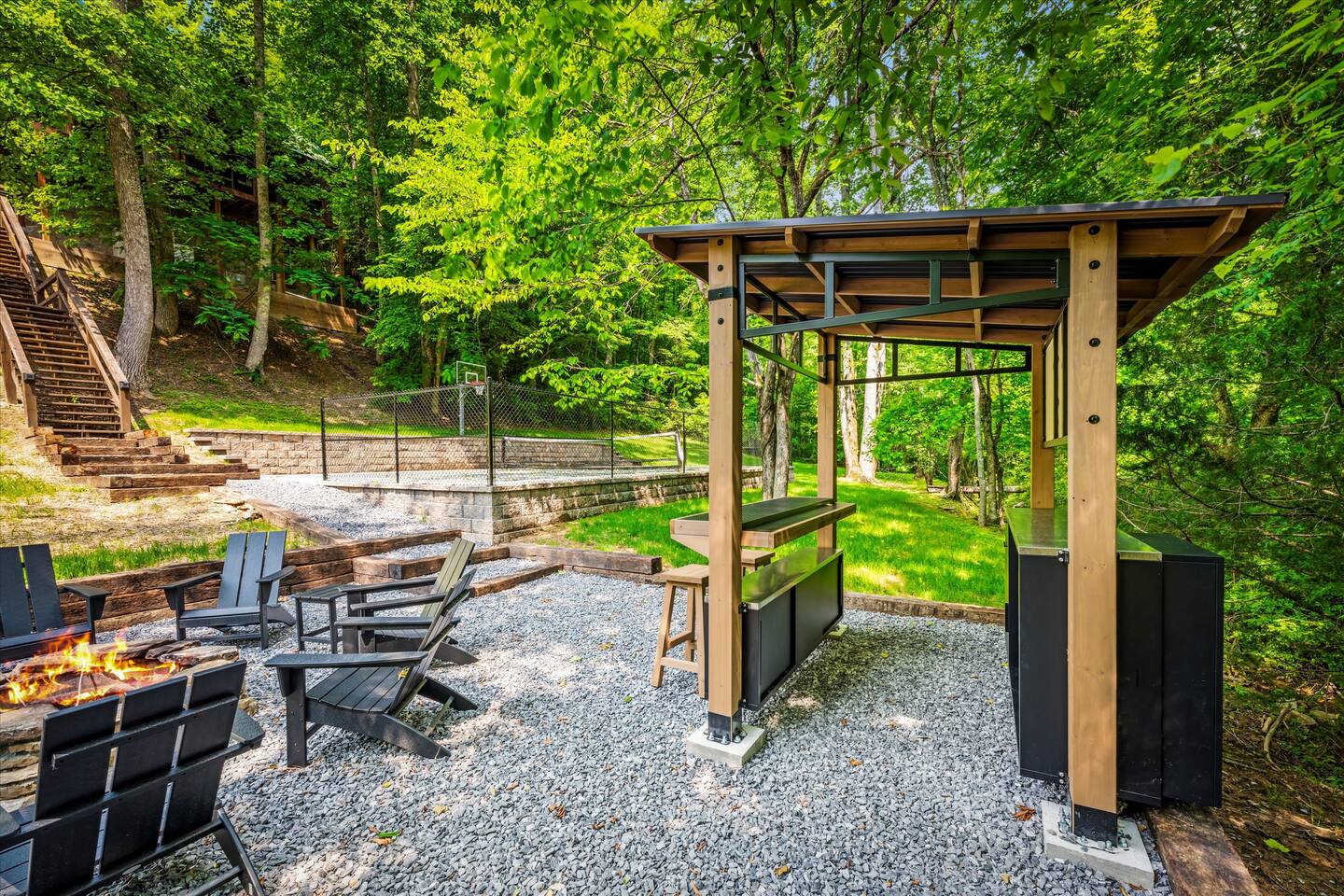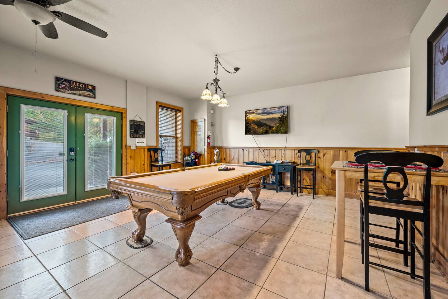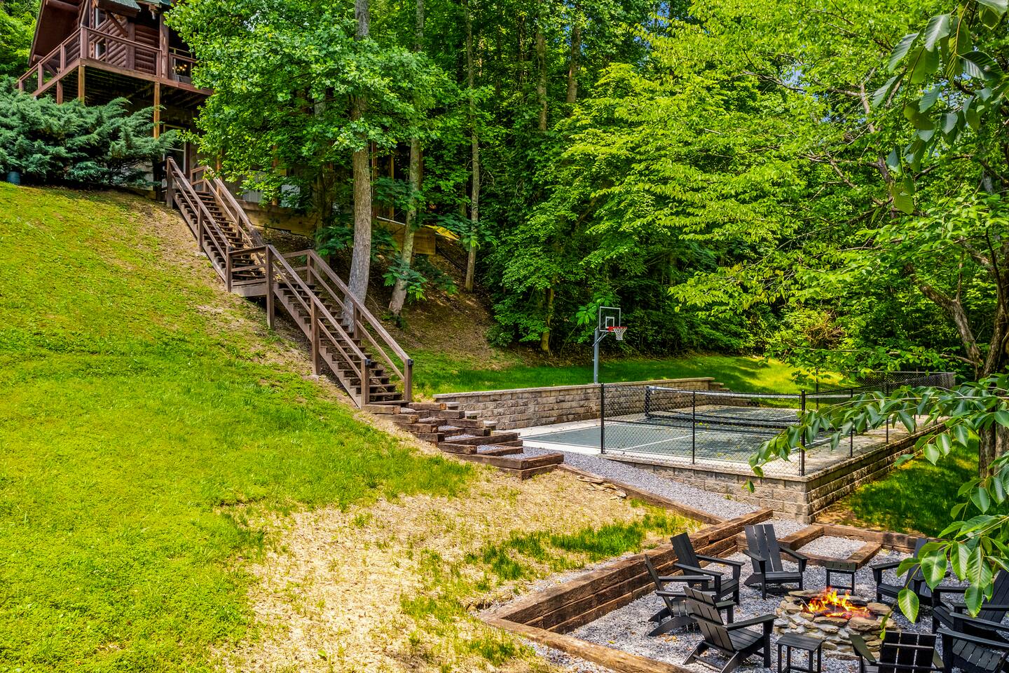 Features • 4 Bed/3.5 Bathroom Cabin - Sleeps 12 • Private Pickleball Court • Pool Table/Arcade/Game Room • Outdoor Hot Tub - New in 2023 and Seats 4 • Outdoor Fire Pit • Cable TV and High Speed Wi-Fi • Parking for 5 vehicles • Brand new Kitchen Appliances (2023) • EV Charger - Tesla, Nissan, Toyota, BMW, etc. • Access to Honeysuckle Meadows Pool and Fishing Pond (20 min from cabin - May to Sept) • 15 Minutes from Pigeon Forge This spacious, three-bedroom plus a bedroom loft cabin is right near the Smoky Mountains National Park and is perfect for hiking, mountain biking, and many other wilderness adventures. This cabin is positively aglow with rich, hardwood floors, knotty pine walls, and vaulted ceilings. The open living area has a plush leather sofa, twin matching recliners, and a stone-face gas fireplace. Features 4 TVs, WiFi, Cable, Pool Table, Jetted tub, outdoor hot tub and an amazing deck to watch those beautiful TN sunsets. Host your next vacation or holiday gathering at Relaxation Retreat, a gorgeous three story Tennessee cabin, complete with a game room, an indoor Jacuzzi, and a private outdoor hot tub. Take a short drive over to Pigeon Forge, the home of Dollywood and so many other fun-filled attractions, shops, and excellent restaurants! Relaxation Retreat is positively aglow with rich, hardwood floors, knotty pine walls, and vaulted ceilings with exposed timber beams along with all the desirable modern conveniences of home. Relaxation Retreat has amble parking to fit 3-4 vehicles. The open living area has a plush leather sofa, twin matching recliners, and a stone-face gas fireplace. The open concept kitchen has cabinets and drawers stocked with essential cookware and dinnerware, and a full array of appliances including a dishwasher and Keurig. Brand new kitchen appliances installed in 2023. Augment those home-cooked meals with the gas grill located outside on the well-appointed deck. Close by, there's a dining table with seating for ten and a breakfast bar with with seating for three. The main floor also includes the romantic and enviable master suite which offers a cozy king-size bed and a large en suite bath with a soothing Jacuzzi tub and separate step-in shower. Downstairs there are two additional bedrooms, including one with a queen bed and the other with two twins plus a full bath. The upstairs loft offers an additional queen and another full bath with a shower. With three bedrooms, a furnished loft with a pull out daybed, and an additional sleeper sofa on the lower level, this home sleeps up to 12 guests very comfortably. Thanks to the complimentary WiFi, you can easily stream your favorite shows and share photos and videos of your vacation with friends and family back home. Check on the local news and weather or keep up with all your favorite shows on multiple cable TVs. Head downstairs into the game room and enjoy a few games of pool or the arcade cabinet. At the end of the day slide into the hot tub located out on the deck. A private washer/dryer is also provided if you want to leave those bulky, over-stuffed suitcases back home! No visit to the area would be complete without a trip to nearby Dollywood or Pigeon Forge. The cabin is just 15 minutes from Pigeon Forge and 25 minutes from Gatlinburg. Conveniently close to a main road with no windy or steep mountains to climb. No matter the season, make your reservation today and get ready to experience the beauty of the Great Smoky Mountain National Park at this rustic and well maintained cabin!